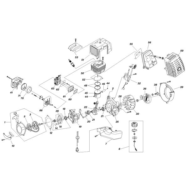 Esploso ricambi Mototrivella a scoppio GREEN LINE AG 52
