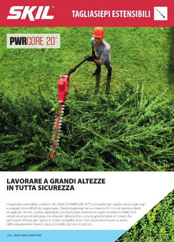 Il tagliasiepi estensibile a batteria SKIL 0640 CA PWRCORE 20™ è concepito per tagliare senza scale siepi