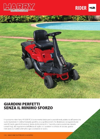 Il nuovissimo rider Harry HR 6500 RC è lo strumento ideale per la cura del verde, adatto sia all’utente che