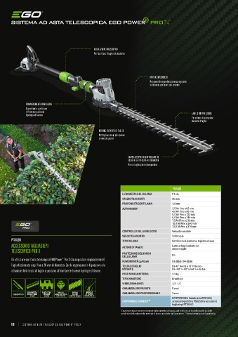 Da utilizzare con l’asta telescopica EGO Power Pro X (da acquistare separatamente). DELLA LAMA Da utilizzare con l’asta telescopica EGO Power Pro X (da acquistare separatamente). CAPACITÀ SERBATOIO OLIO 180 ml con ingranaggio a vite senza fine