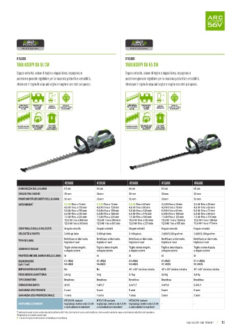 TAGLIASIEPI DA 51 CM TAGLIASIEPI DA 61 CM TAGLIASIEPI DA 66 CM 5,0 Ah Fino a 150 min 5,0 Ah Fino a 150 min 5,0 Ah Fino a 120 min 5,0 Ah Fino a 82 min 5,0 Ah Fino a 72 min