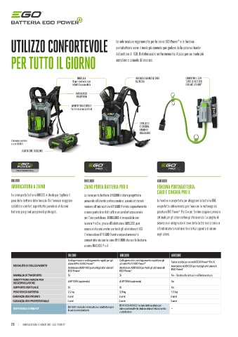 UTILIZZO CONFORTEVOLE Le imbracature ergonomiche per lo zaino EGO Power e la fondina