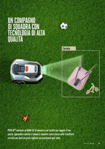 così ogni zona d’erba riceve la cura che merita. curioso, evita in modo intelligente gli ostacoli e continua a lavorare.