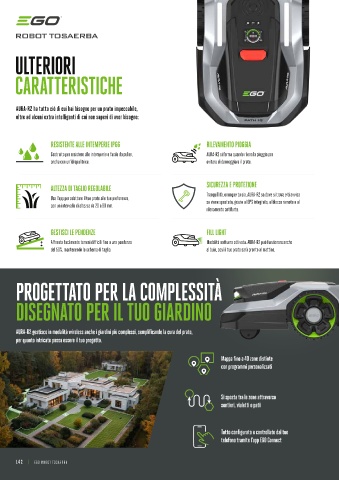 RESISTENTE ALLE INTEMPERIE IP66 RILEVAMENTO PIOGGIA L’app EGO Connect ti offre la massima flessibilità per impostare e dimenticare o