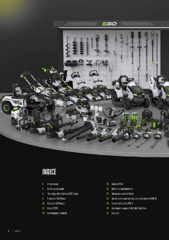 8 Il sistema EGO Power+ 35 Box di ricarica multiporta e caricabatterie da 1600 W 70 Decespugliatori 126 Lifestyle