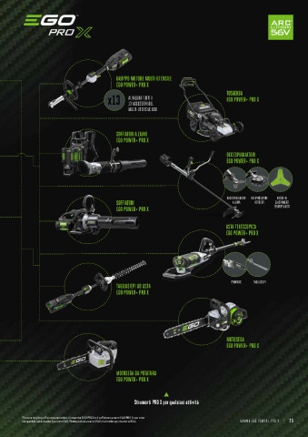 24 | GAMMA EGO POWER+ PRO X compatibili con la batteria a zaino EGO, l'imbracatura a zaino EGO o la fondina per batteria EGO. GAMMA EGO POWER+ PRO X | 25