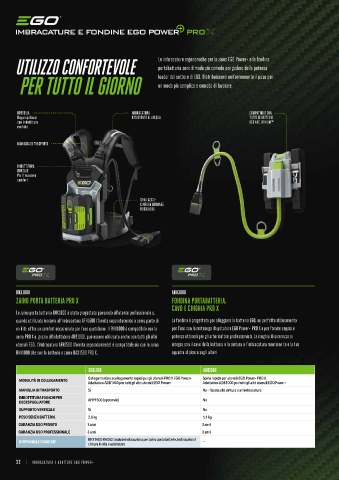 32 | IMBRACATURA E ADATTORE EGO POWER+ IMBRACATURA A ZAINO EGO POWER+ PRO X | 33