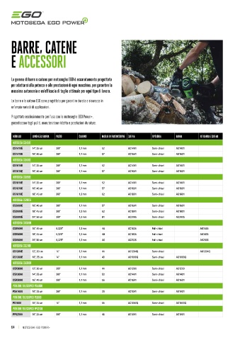 CS1810E 16", 40 cm 3/8" 1,1 mm 57 AC1601 Semi-chisel AG1601 Barra guida 35 cm per CS1410E Barra guida 50 cm per CS2000E Barra guida 30 cm per CSX3000