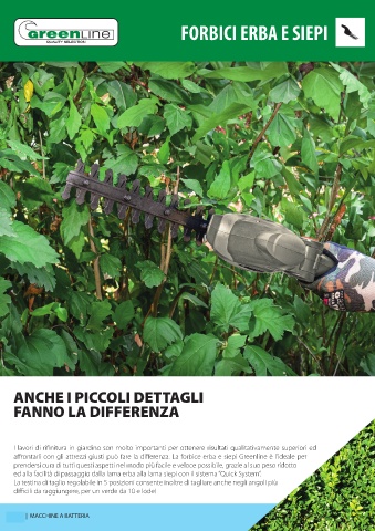 ed alla facilità di passaggio dalla lama erba alla lama siepi con il sistema “Quick System”.