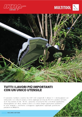 Il nuovissimo multitool a batteria Ikra ICMT 2/20 comprende 4 attrezzi in 1: decespugliatore con
