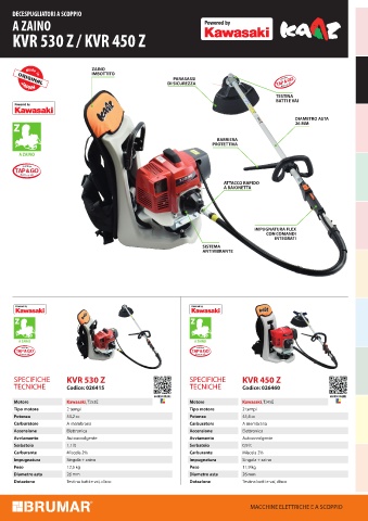SPECIFICHE KVR 530 Z SPECIFICHE KVR 450 Z