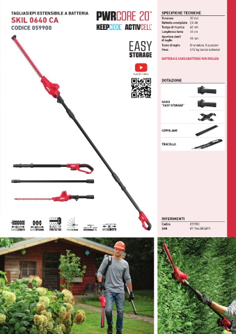TAGLIASIEPI ESTENSIBILE A BATTERIA SPECIFICHE TECNICHE